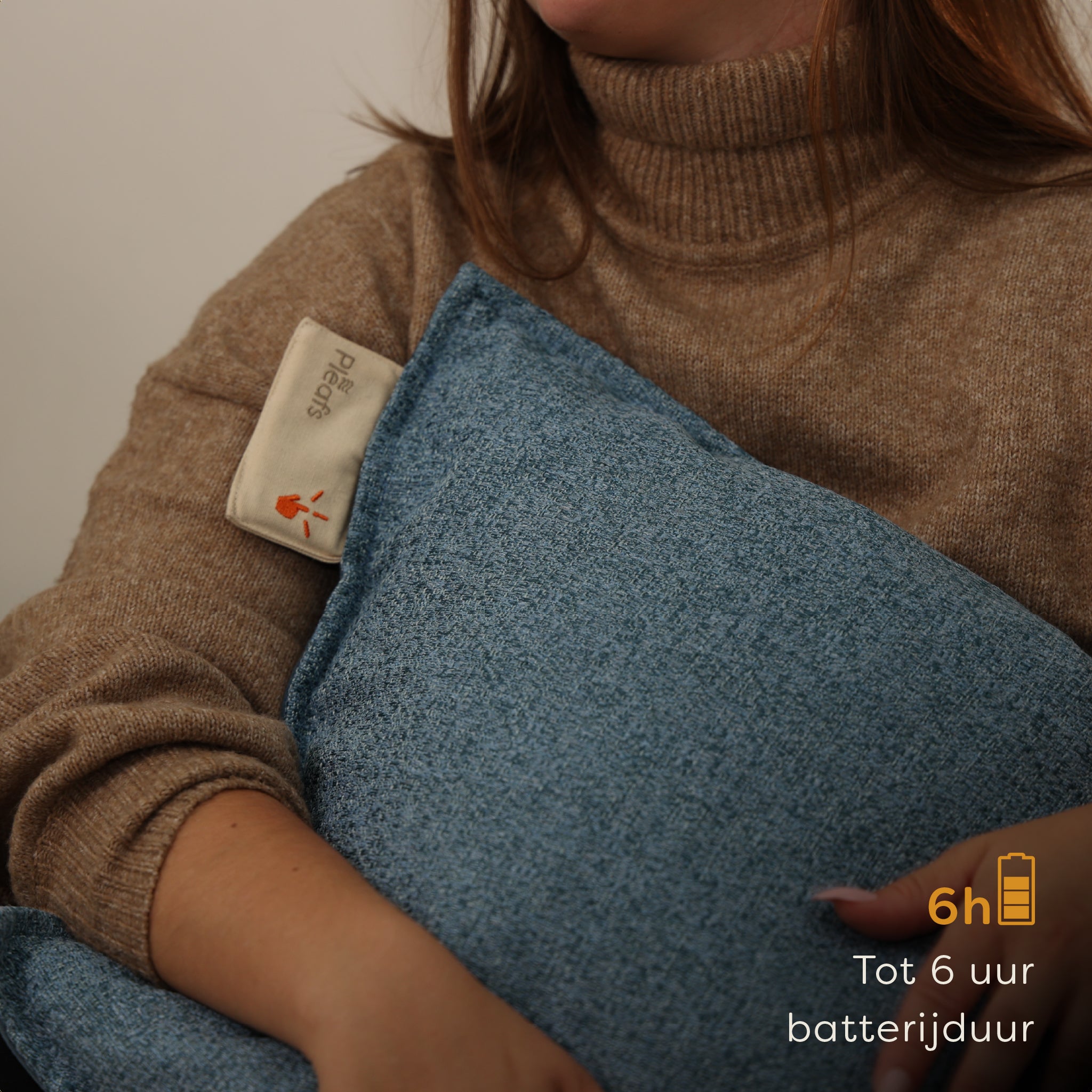 Het warmtekussen is geheel draadloos, waardoor je het kussen makkelijk overal mee naar toe kunt nemen en kunt gebruiken. Geen gedoe meer met het zoeken naar een stopcontact. Door de meegeleverde batterij op te laden kun je tot wel zes uur lang genieten van de heerlijke warmte! Door dit ontwerp is het mogelijk om het kussen zelfs tijdens het reizen te gebruiken.