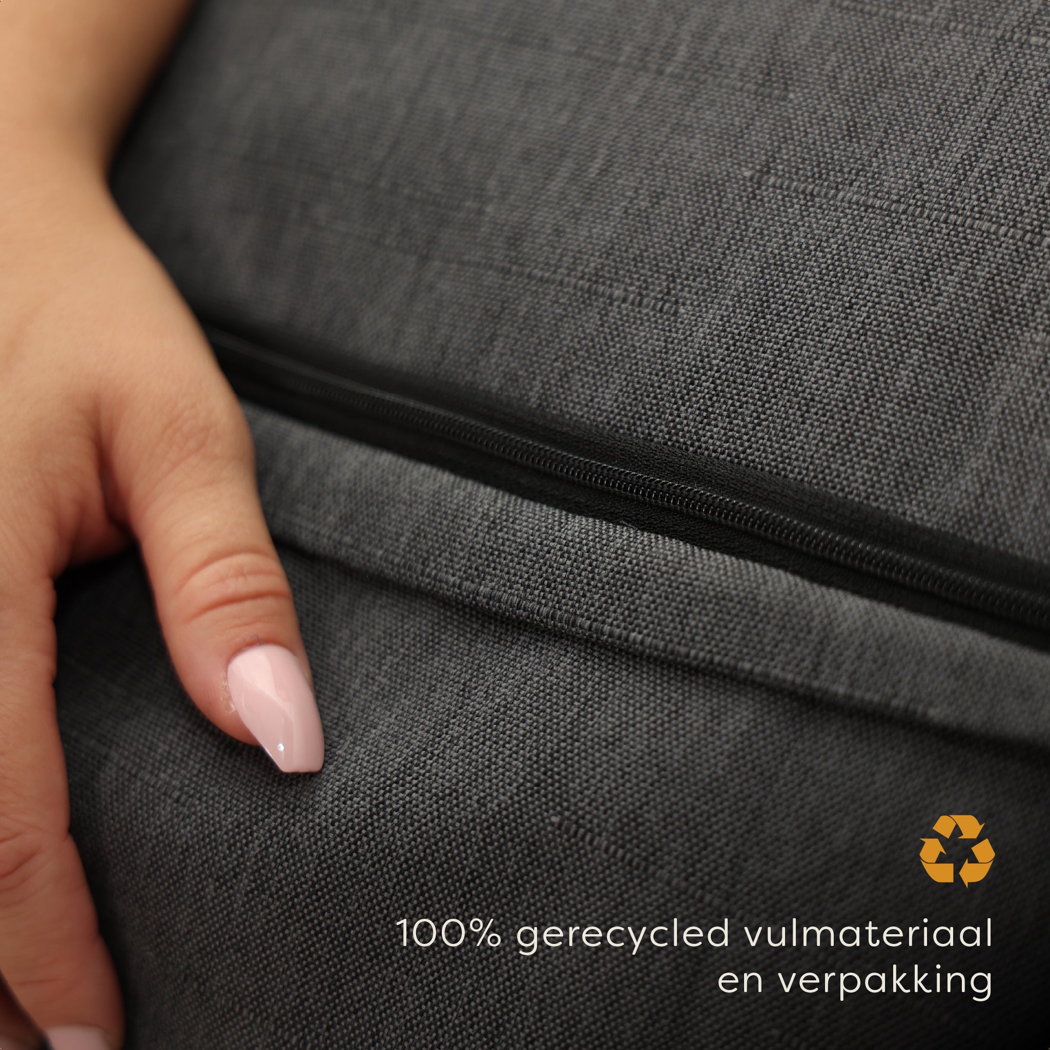 Dankzij de outdoor stof kun je het kussen ook buiten gebruiken, het materiaal is namelijk water- en vuilafstotend. Het kussen in de kleur Carbon is ook in maar liefst 4 andere kleuren verkrijgbaar! Pleafs® vindt dat duurzaamheid en comfort goed samen kunnen. Zo kun je de verwarming lager zetten bij gebruik van het warmtekussen, wat niet alleen goed is voor het milieu, maar ook voor je portemonnee! Daarnaast is het kussen gevuld en verpakt met 100% gerecyclede materialen die voldoen aan de Global Recycle Standard. De afmetingen van het kussen zijn 45x45cm.